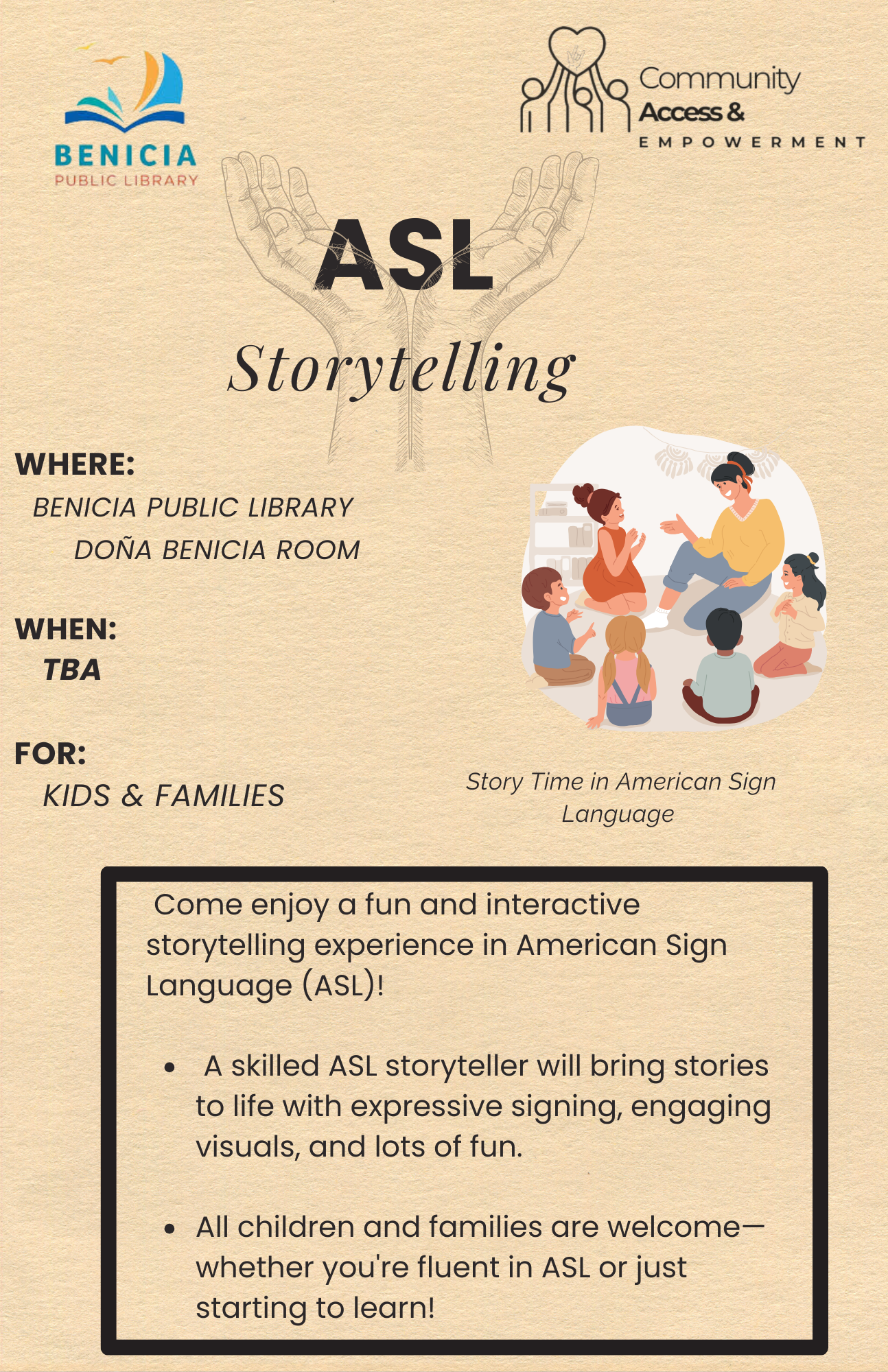 Come enjoy a fun and interactive storytelling experience in American Sign Language (ASL)!